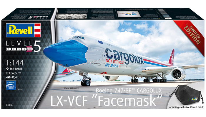 Não sem máscara! Este princípio agora se aplica a quase todos os lugares, e a companhia aérea de carga CARGOLUX, de Luxemburgo, está até mesmo levando-o ao redor do mundo com uma aeronave especialmente pintada. A máscara está incluída no conjunto