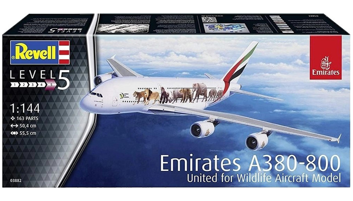 A Emirates tem como objetivo chamar a atenção para o comércio ilegal de animais .A versão do modelo "Animais Ameaçados" em escala 1: 144 enriquece todas as coleções. - Réplica do modelo do A380 com grandes elementos decorativos - 22 rodas - Pilões e motores detalhados